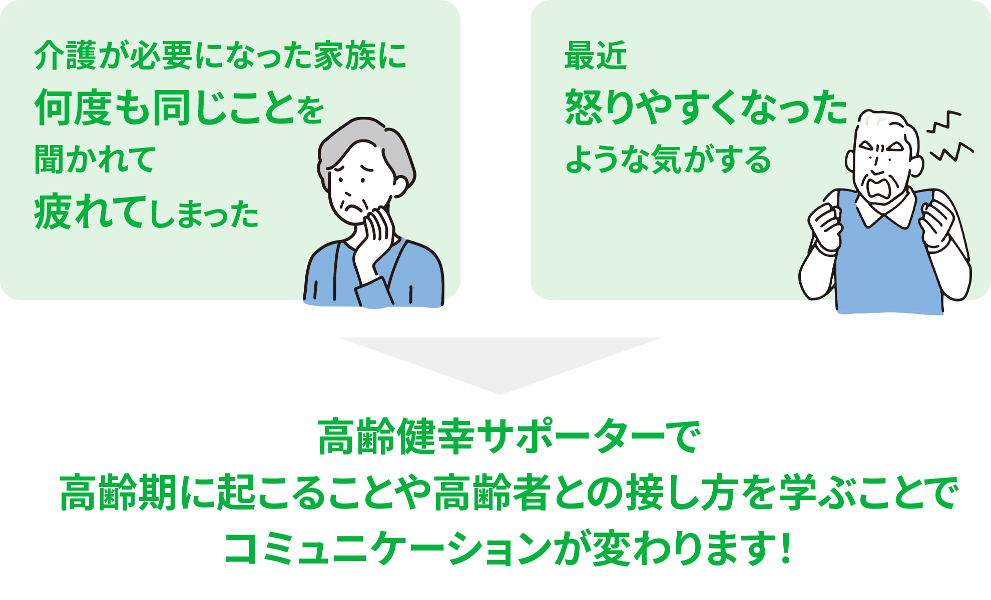 高齢者との接し方、高齢期に起こることなど、高齢者を支えていくために必要な知識を学ぶことができます。自分自身の老後のためにも役立ちます。